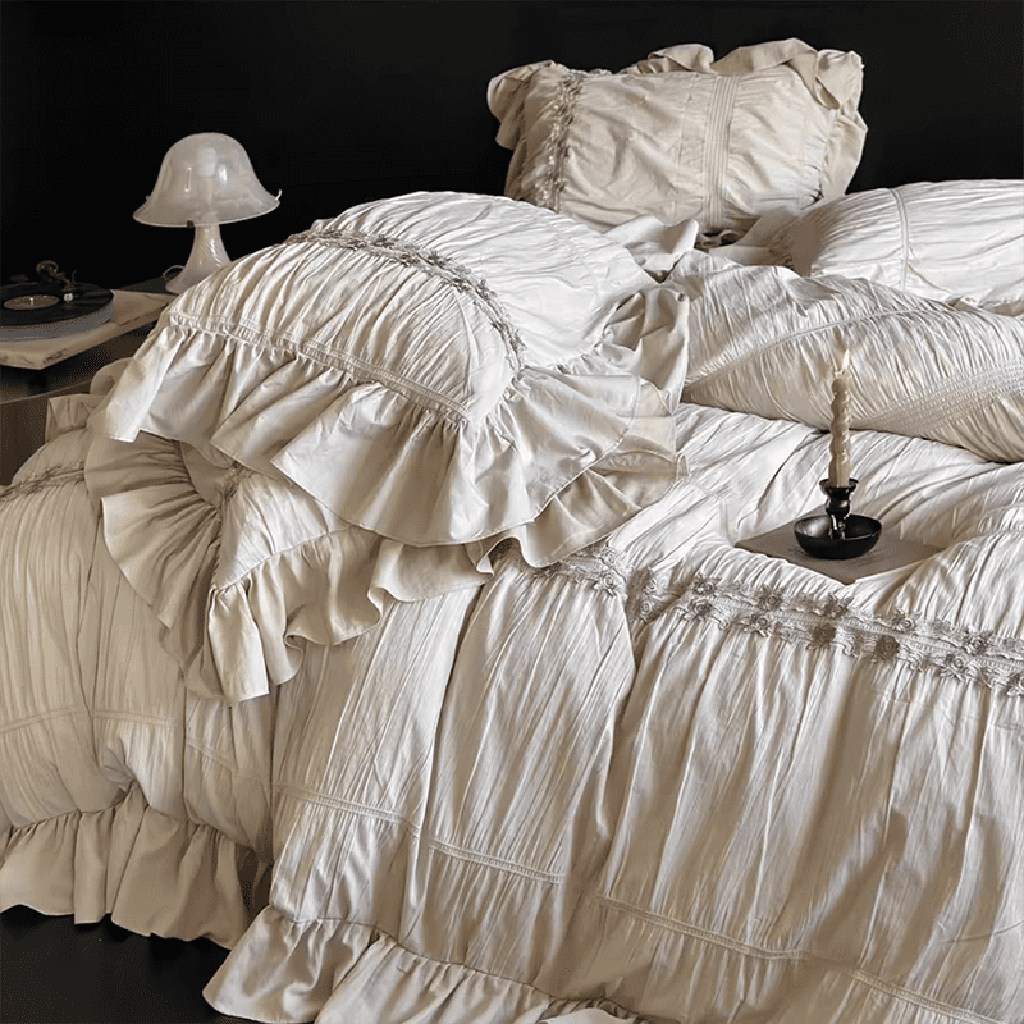 Juego de funda nórdica con volantes en estilo shabby chic blanco