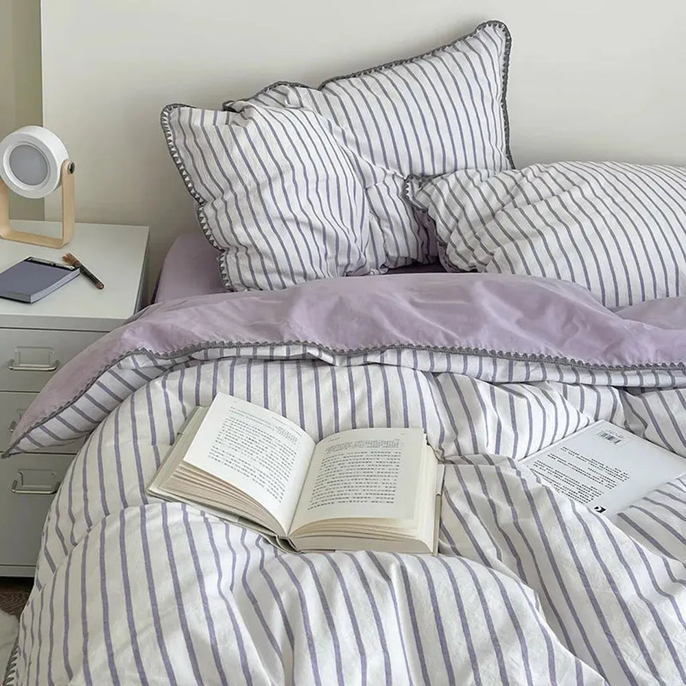 Juego de cama pequeño de algodón a cuadros - Azul bebé