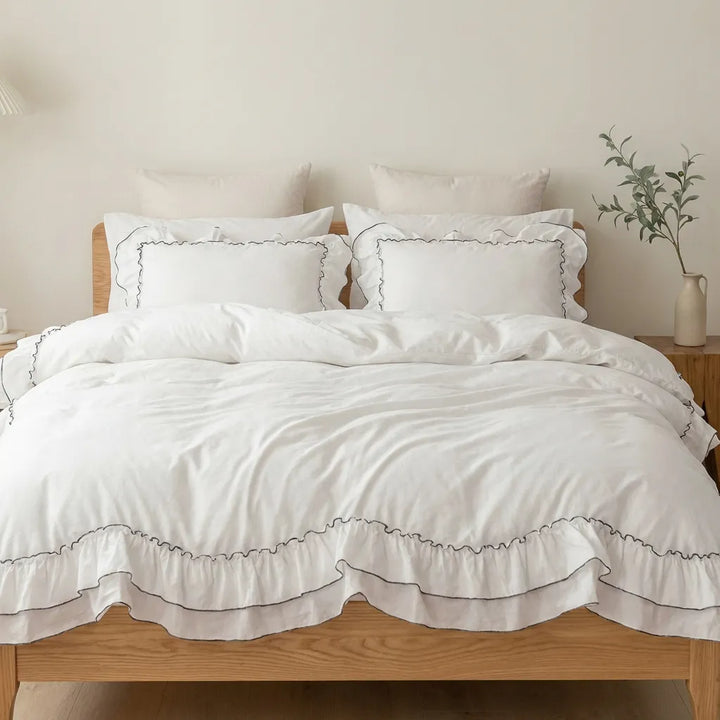 Parure de lit classique à volants contrastés