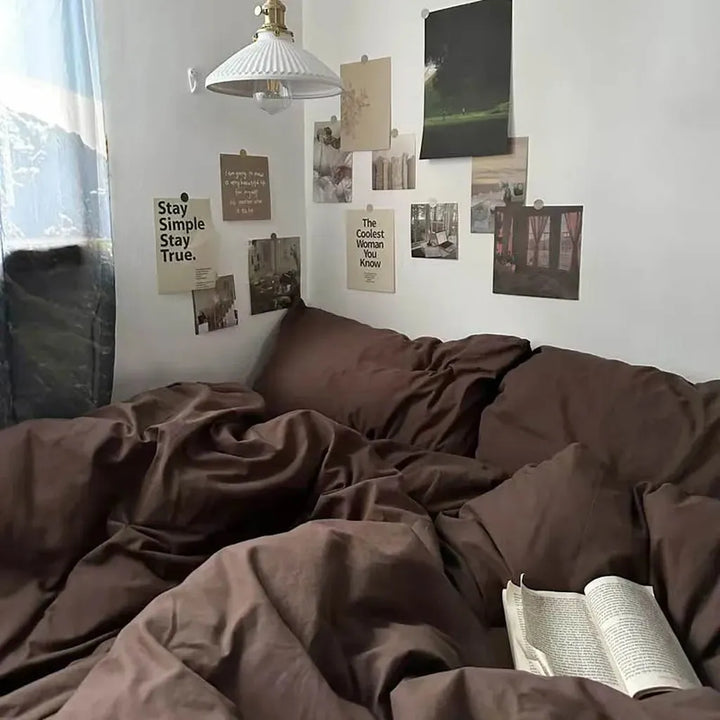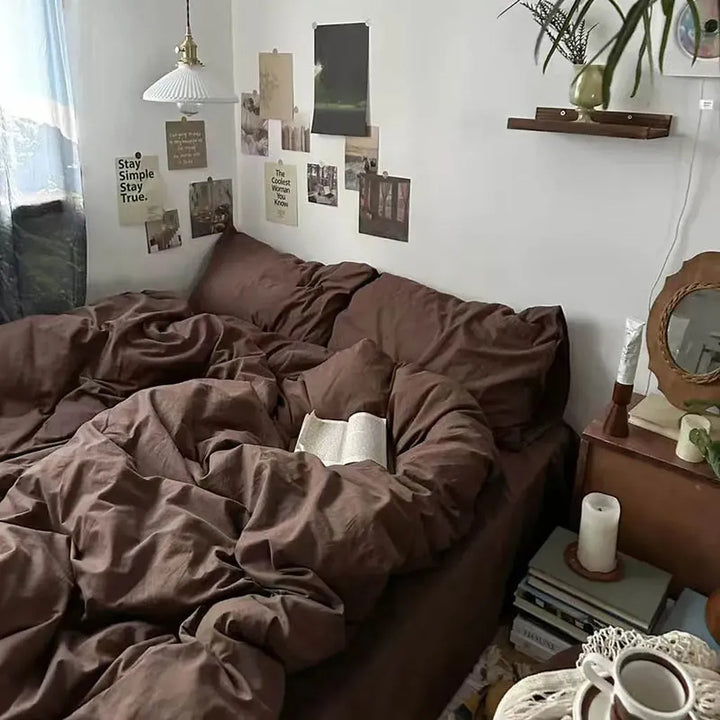 Créez une ambiance automnale parfaite avec cette parure de lit brune inspirée de Maillard. Ses tons chauds et naturels apportent une atmosphère automnale et chaleureuse à votre chambre, comme si vous vous enveloppiez dans votre pull préféré. Douce et confortable, elle est idéale pour les soirées fraîches où l'on a juste envie de se détendre.