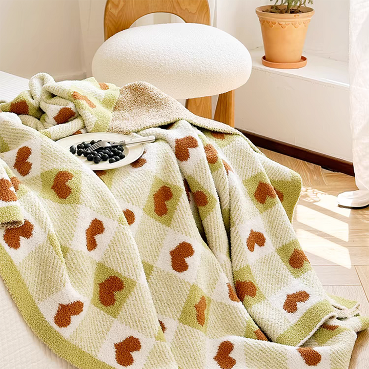 Plongez dans un univers où confort rime avec charme ! Ce plaid arbore un motif damier ludique entrelacé de cœurs. Idéal pour des soirées douillettes, ce plaid n'est pas seulement chaleureux ; c'est un véritable plaisir visuel et tactile, conçu pour apporter sourire et joie.