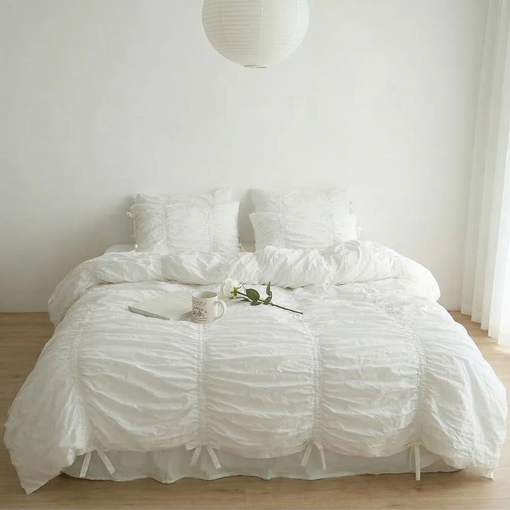 If you're ready to turn your bedroom into a dreamy retreat, you're going to love this duvet cover. It's got gorgeous ruched detailing that adds a touch of elegance and a bit of romance to your space. Trust me, it's the perfect way to give your room a touch of luxury and make every night feel like a special occasion.