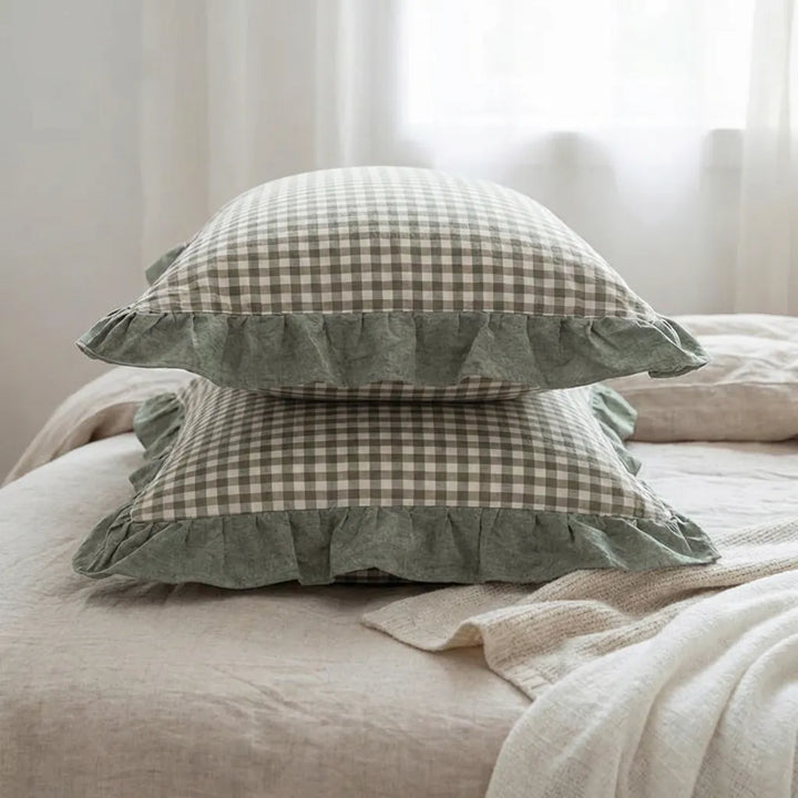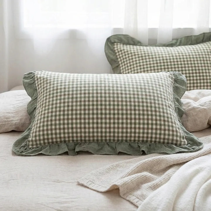 There's something comforting about the classics. Our green gingham pillowcase is crafted from breathable, 100% cotton and finished with a delicate ruffle trim that whispers "vintage elegance." There's no place like home when it's filled with soft cotton, classic prints, and a bit of ruffle. Don't miss out on our limited run of the Rustic Gingham Pillowcase.