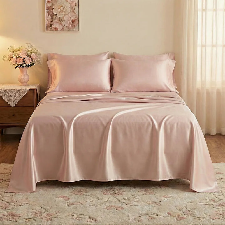 The soft pink color of our silk sheet isn't just beautiful-it promotes a feeling of calm and purity in your bedroom. Imagine slipping into the cool, gentle embrace of silk after a long day and letting the stress melt away. Whether it's a lazy Sunday morning in bed or a peaceful night's sleep, our white silk sheet adds a touch of everyday luxury to your life.