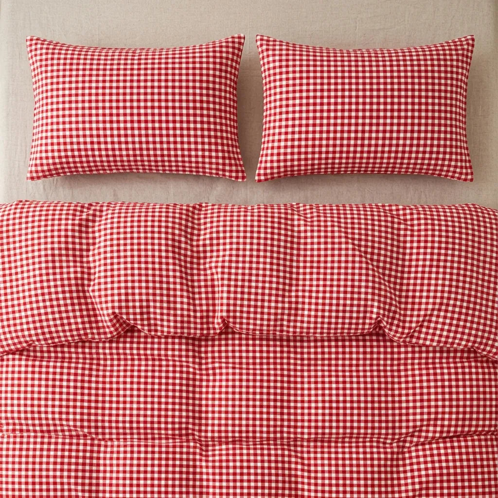 Introducing our new gingham duvet cover - a warm, vintage-inspired red that instantly adds charm and coziness to your space. The yarn-dyed checks bring rich, lasting color and a beautifully textured look that feels both classic and fresh. With its inviting red tones and nostalgic pattern, this duvet cover also adds the perfect holiday-ready touch to your bedroom.